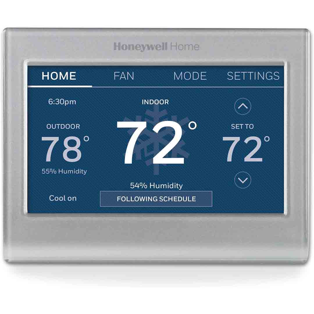 The RTH9585WF1004 provides a stylish, contemporary smart thermostat solution featuring a vivid color touchscreen and Wi-Fi access. You can control the temperature remotely through the Honeywell Home app, monitor live weather conditions, and receive notifications for things like extreme indoor/outdoor temperatures or filter replacement. The touchscreen supports custom color themes, allowing it to complement your …