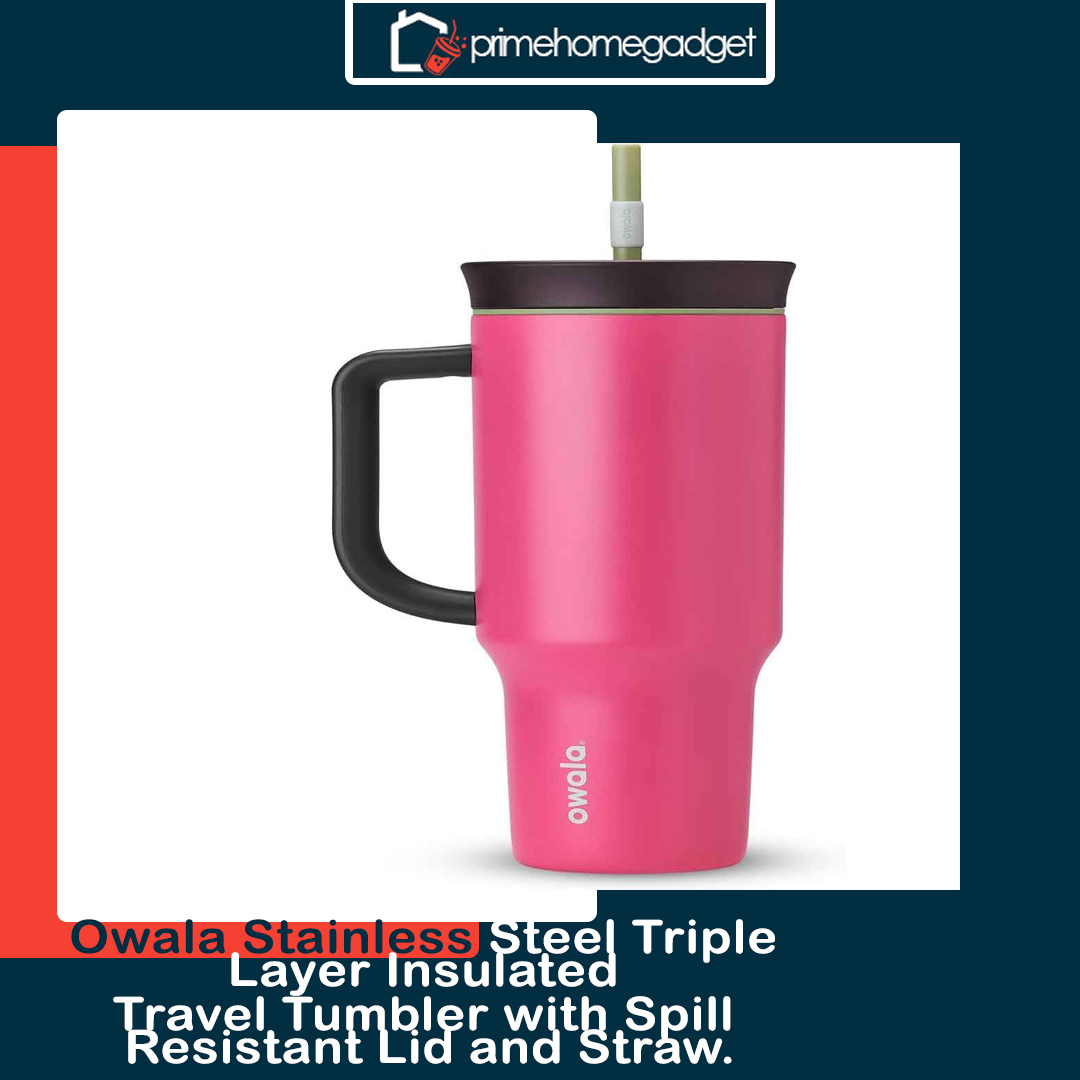 Owala Stainless Steel Triple Layer Insulated Travel Tumbler with Spill Resistant Lid and Straw.