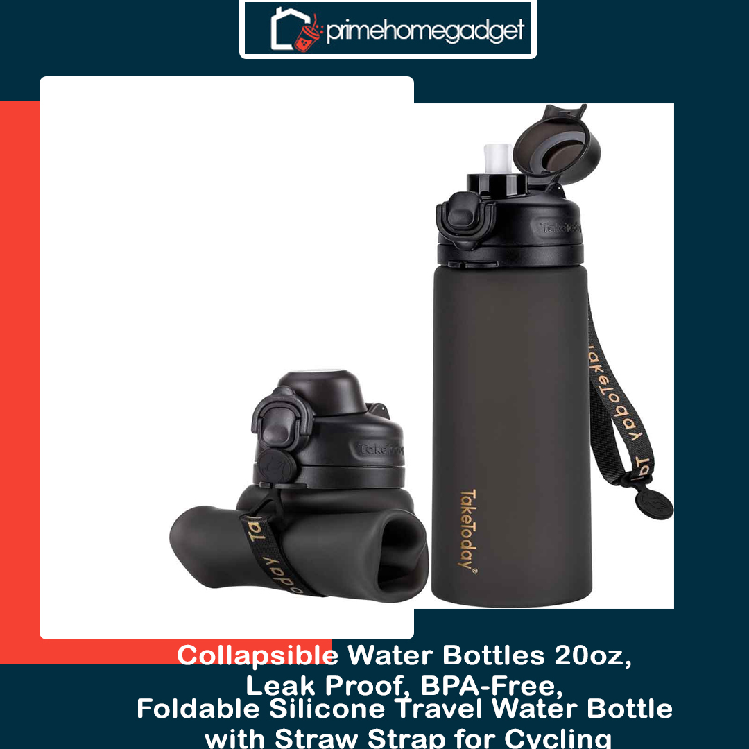 Collapsible Water Bottles 20oz, Leak Proof, BPA-Free, Foldable Silicone Travel Water Bottle with Straw Strap for Cycling