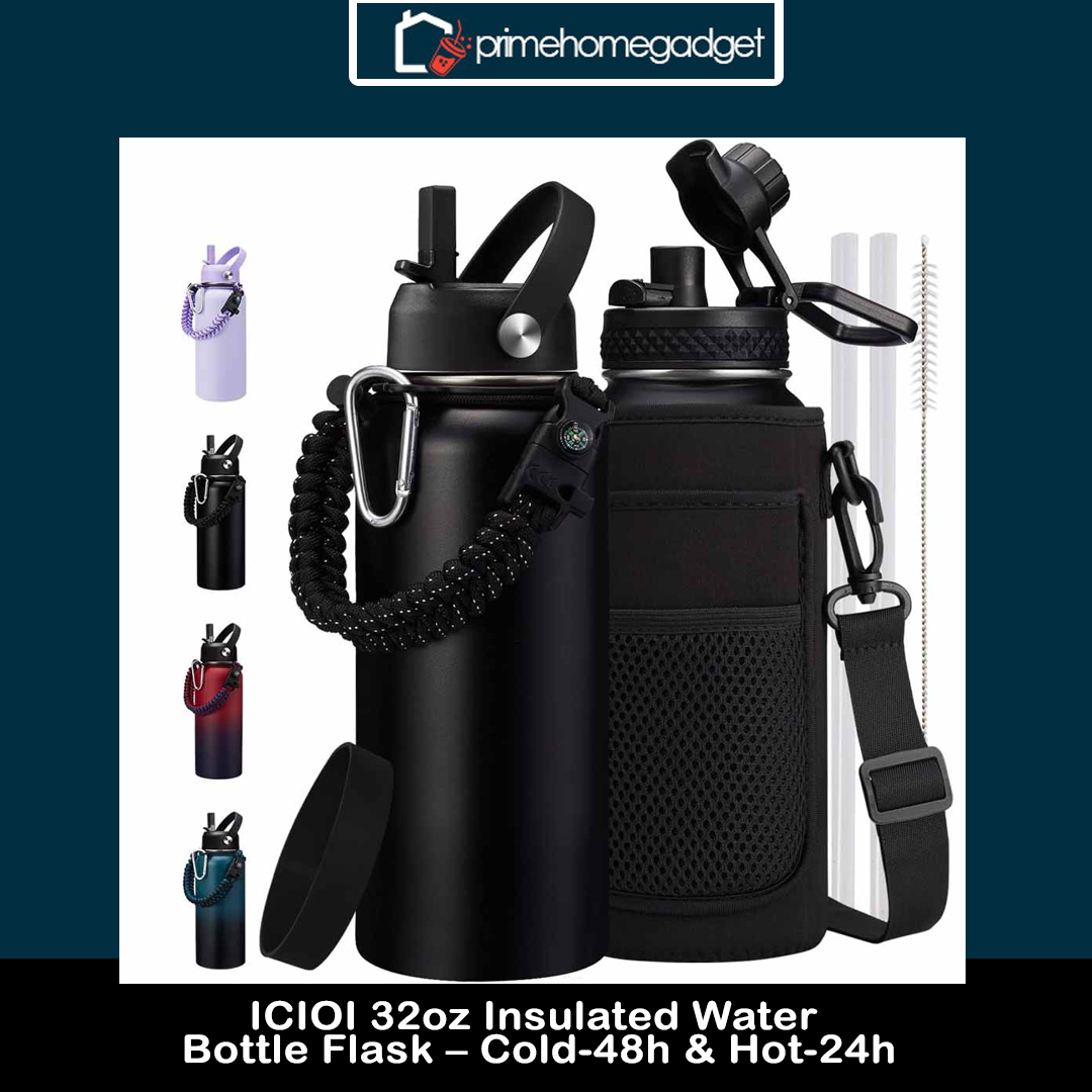 ICIOI 32oz Insulated Water Bottle Flask – Cold-48h & Hot-24h