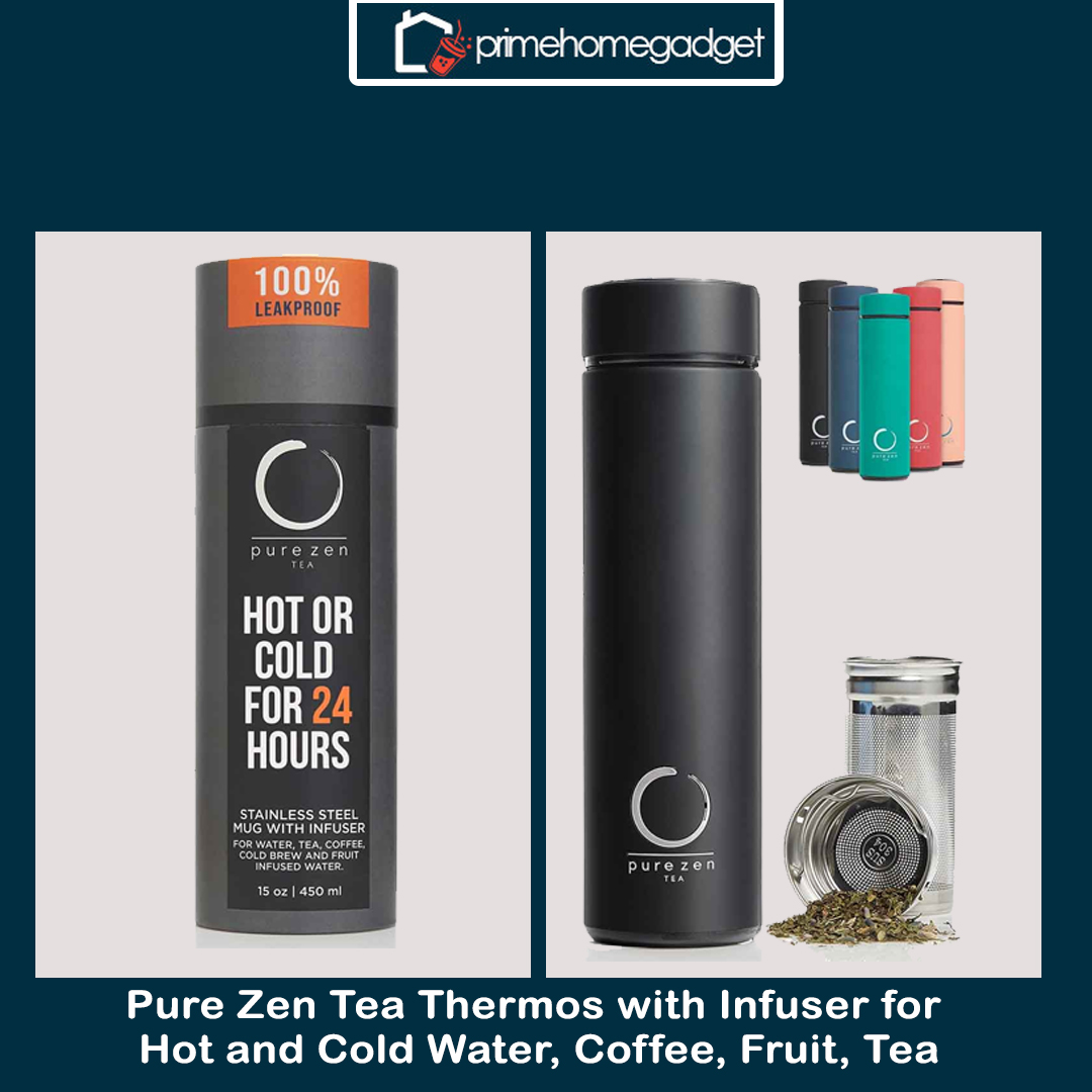 Pure Zen Tea Thermos with Infuser for Hot and Cold Water, Coffee, Fruit, Tea