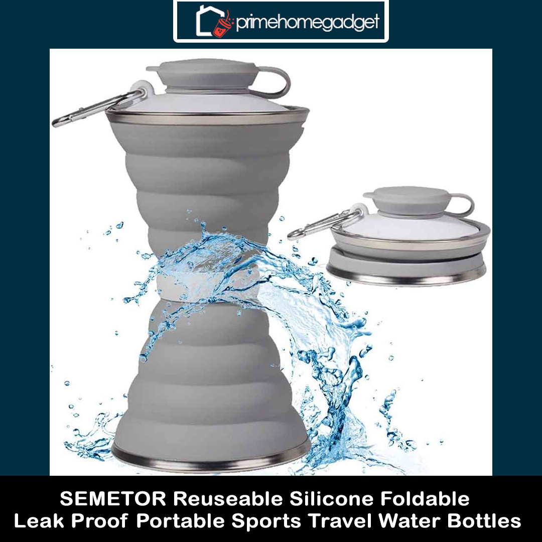 SEMETOR Reuseable Silicone Foldable Leak Proof Portable Sports Travel Water Bottles